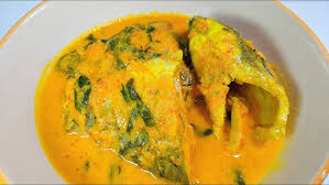 Ikan dimasak dalam kuah gulai kuning berbumbu rempah dan santan, rasanya gurih, sedikit pedas, dengan aroma kunyit yang khas.