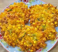 Gorengan jagung manis yang dicampur adonan bumbu, digoreng renyah, gurih, dan cocok sebagai lauk pendamping.