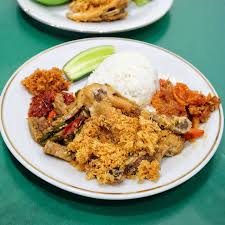 Ayam berbumbu rempah khas, digoreng hingga kulitnya renyah dan dagingnya tetap empuk serta gurih.