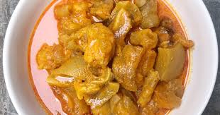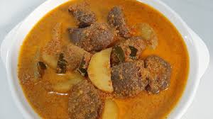 Otak sapi dimasak dalam kuah gulai santan berbumbu rempah, teksturnya lembut lumer dengan rasa gurih dan sedikit pedas.