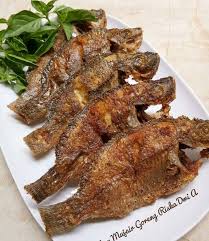 Ikan nila digoreng hingga garing di luar dan lembut di dalam, disajikan dengan bumbu gurih dan aroma khas.