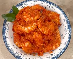 Udang dimasak dengan sambal balado merah khas Padang, rasanya pedas, gurih, dan sedikit manis dengan aroma rempah yang kuat.